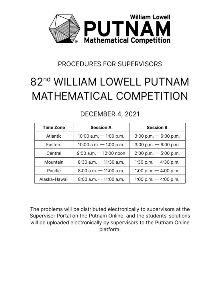 Administered by the mathematical association of america since the 1930’s, it is constructed to test originality as. The putnam competition occurs annually on the first saturday of december.